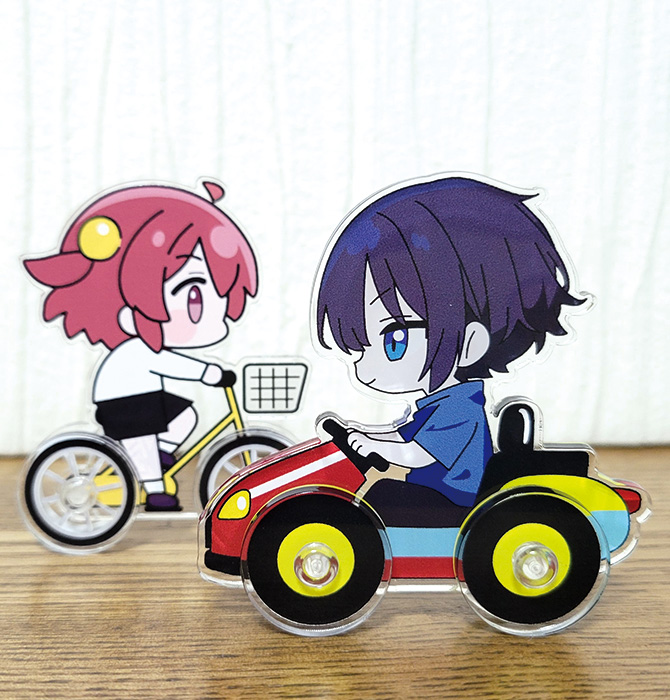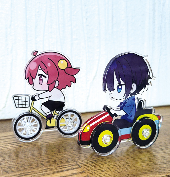 アクリルグッズとしての美しさはそのままに、タイヤを組み込むことで「動く」という楽しさをプラス。