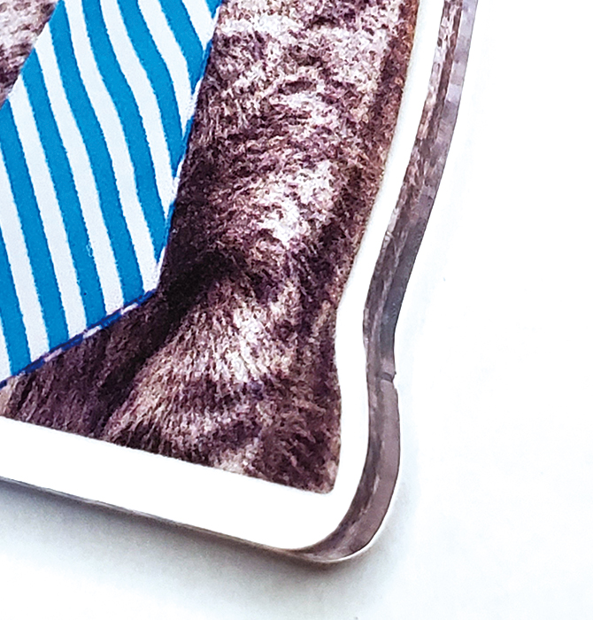 片面印刷が主流のアクリルキーホルダーですが、両面印刷もおすすめです。表と裏で違うデザインを入れられるため、キャラクター+ロゴなど、楽しみ方の幅が広がります。