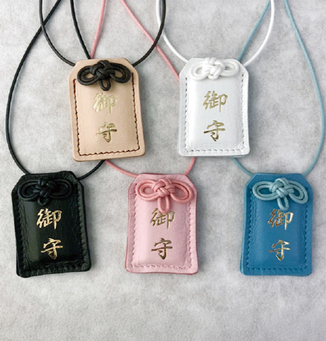 使うほどに味わいが深まる、本革仕立てのお守り。