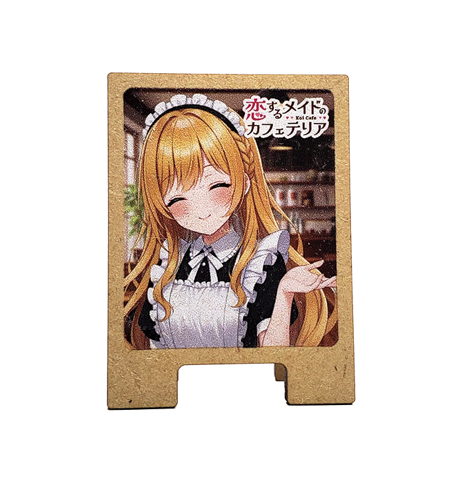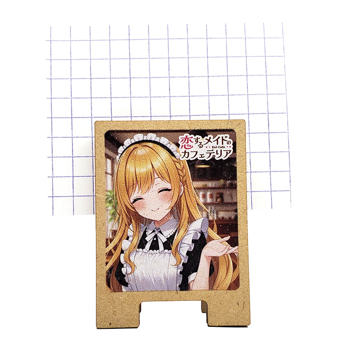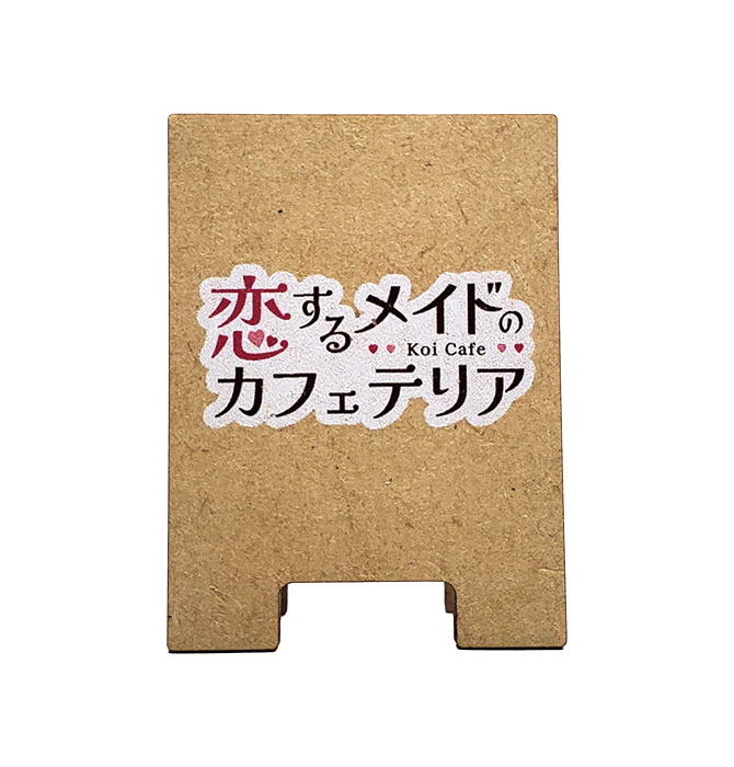 木製メモスタンドは、MDF材に両面UV印刷を施したアイテムです。フルカラー印刷に対応しているため、キャラクターイラストや写真、ロゴなども鮮やかに表現できます。表と裏で異なるデザインを入れられるため、正面・背面どちらから見ても楽しめる点も特長です。木製ならではの温かみと、印刷表現の自由度を両立した仕上がりとなっています。
