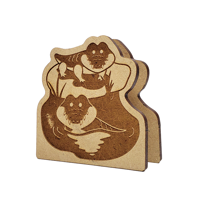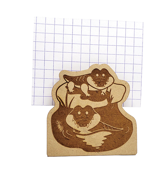 木製彫刻メモスタンドは、レーザー彫刻が美しく映えるMDF材を使用し、絵柄を丁寧に彫刻で仕上げた、温もりのあるアイテムです。インクを使わない彫刻ならではの落ち着いた風合いが特長で、使う場所やシーンを選びません。両面に彫刻を施すことができるため、正面と背面で異なるデザインを入れたり、物語性のある表現を加えることも可能です。